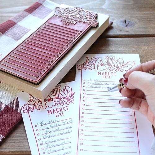 Market Shopping List Stamp on a 8" x 4" engraved maple art mount.
