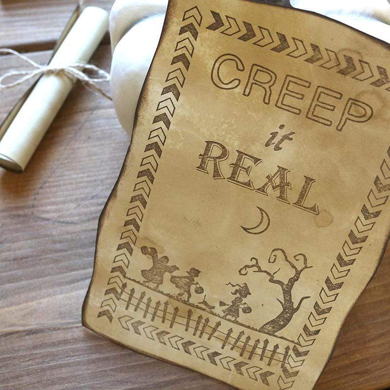 Creep It Real Stamp on 6" x 4" rectangle engraved maple art mount. Requires separate ink pad.