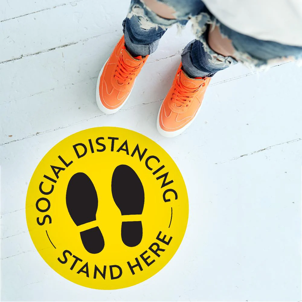 Display this vibrant floor decal as a friendly reminder to adhere to the rules of social distancing. The high-grade polyester construction features a secure grip and resists tearing, stretching and high-traffic activity. These decals work well in grocery stores, airports, restaurants, malls and convention centers. Application works on all indoor hard surfaces, including tiles, concrete, laminate floors and even low pile carpet tiles. When no longer needed, easily remove your Social Distancing Floor Decal with one smooth pull.